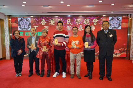 | 永遠名譽會長阮俠廣伉儷主持抽奬及頒奬予中奬500元利是幸運兒合照 |