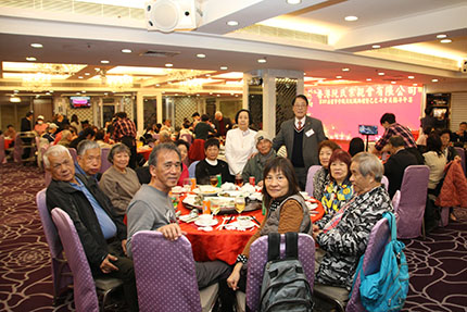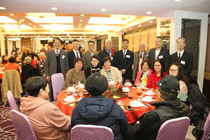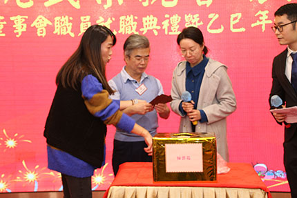 | 職員就職典禮暨乙巳年會員團年午宴,嘉賓及親友熱烈到賀,塲面非常熱鬧,中午 |
